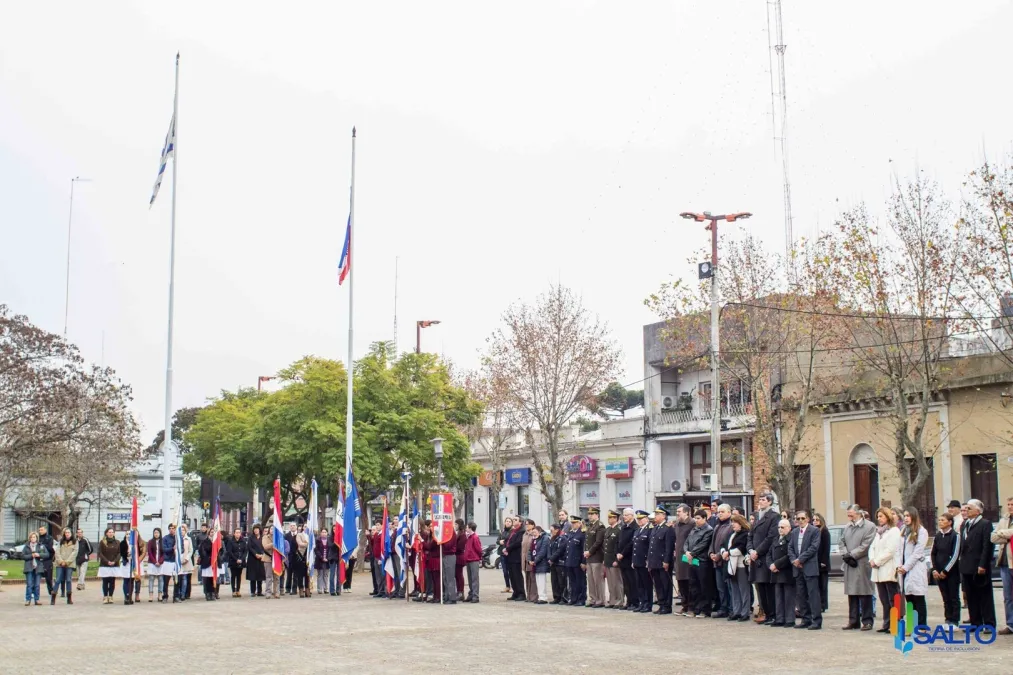 La ocasión estuvo presidida por el secretario general de la Intendencia de Salto, el Lic. Fabián Bochia quien junto al presidente de la Junta Departamental de Salto, Martín Pertusatti, entregaron la ofrenda floral al pie del Monumento del Prócer José Gervasio Artigas.