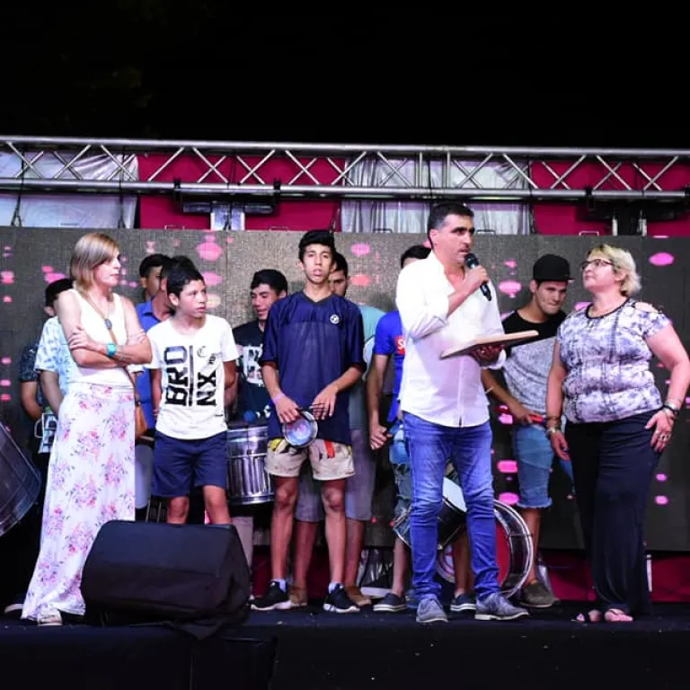 El espectáculo comenzó con plaquetas diseñadas por integrantes de la Comisión de Carnaval que entregó el intendente Andrés Lima a figuras destacas que dejaron su sello en la fiesta de momo: comenzó con la plaqueta a John Glen Jorge al que recordó el intendente Lima junto a su familia como un referente de Comparsa La Estrella. También a María Celia Da Rosa, reina del Carnaval salteño 1985 y a Ruben “Gallo” Torres, creador y alma de Tropi Junior, comparsa que llevaba indudablemente su sello.