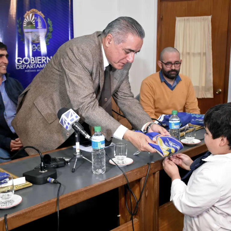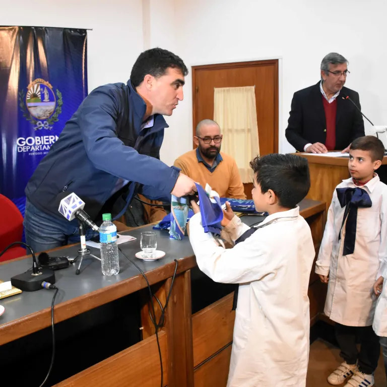 El acto contó con la participación de numerosos escolares, ya que se realizó una entrega de banderas a varias escuelas del departamento.