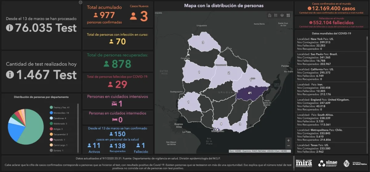 INFORME JUEVES 9 DE JULIO: SE DETECTARON 3 NUEVOS CASOS POSITIVOS DE CORONAVIRUS EN URUGUAY