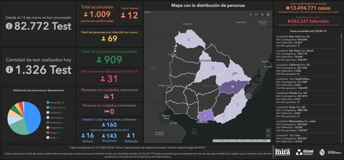 INFORME MIÉRCOLES 15 DE JULIO: SE DETECTARON 12 NUEVOS CASOS POSITIVOS DE CORONAVIRUS EN URUGUAY