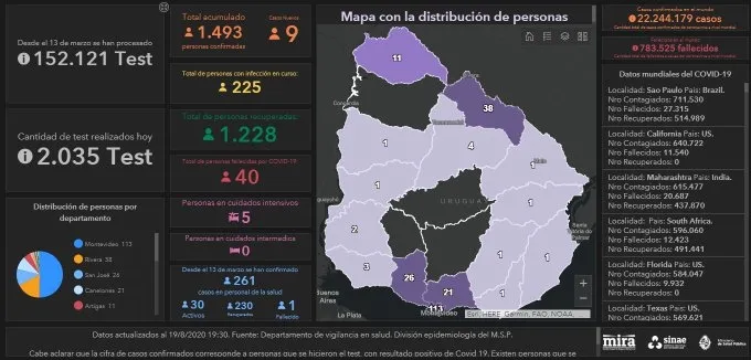 INFORME MIÉRCOLES 19 DE AGOSTO: SE DETECTARON 9 CASOS DE CORONAVIRUS EN URUGUAY