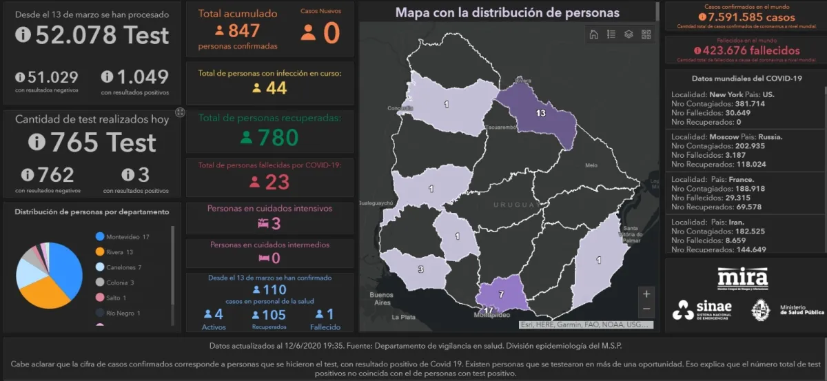 INFORME VIERNES 12 DE JUNIO: VAN 847 CASOS POSITIVOS DE CORONAVIRUS EN URUGUAY
