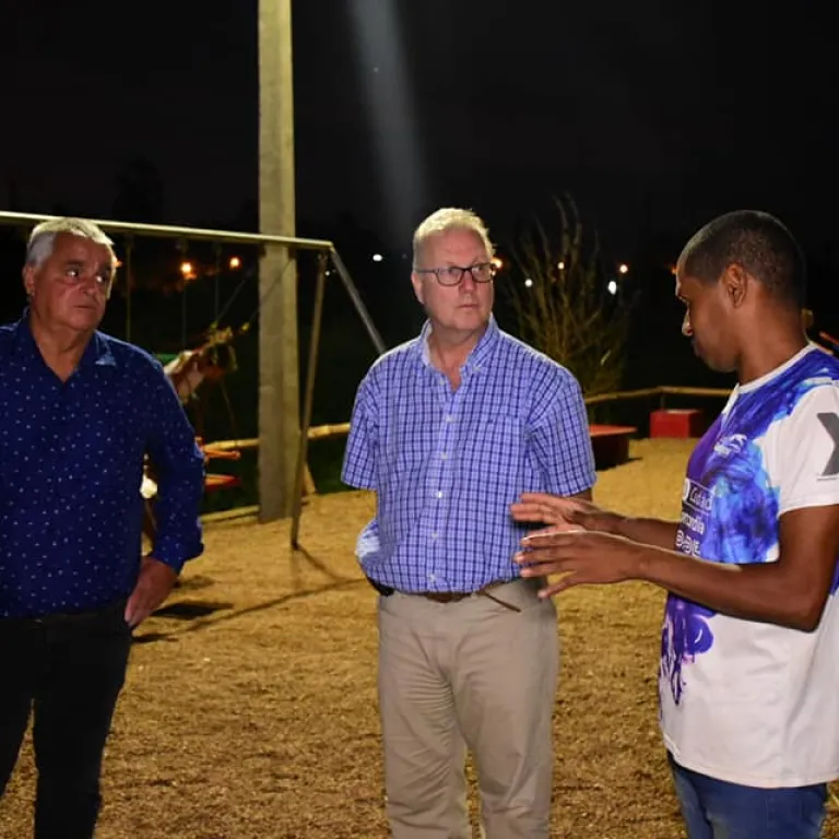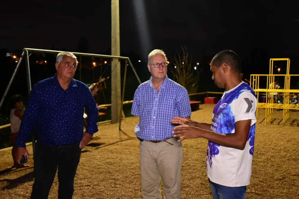 El intendente de Salto Alejandro Noboa y el director de Servicios Públicos de la Intendencia de Salto, Julio Gómez, dejaron habilitada la placita "Rincón de la Alegría" ubicada en barrio Chinchurreta.