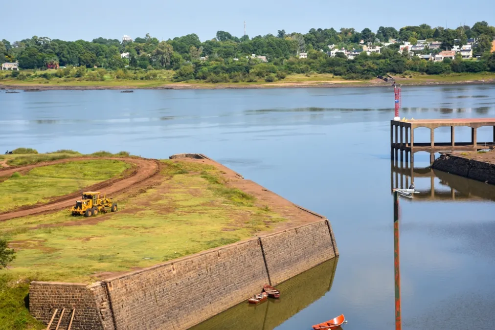 La Dirección de Obras de la Intendencia de Salto se encuentra ejecutando trabajos de reparación en inmediaciones del puente "Los Algarrobos" en Costanera Sur y la creación de un camino de acceso a la escollera sur del Puerto de Salto, una zona muy frecuentada por pescadores..