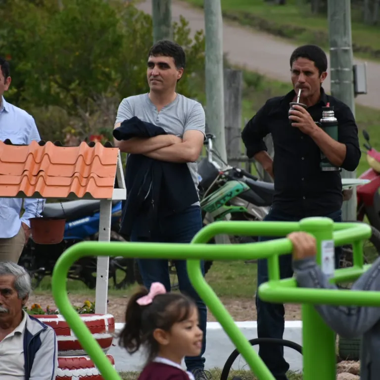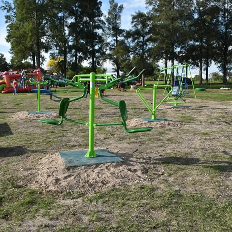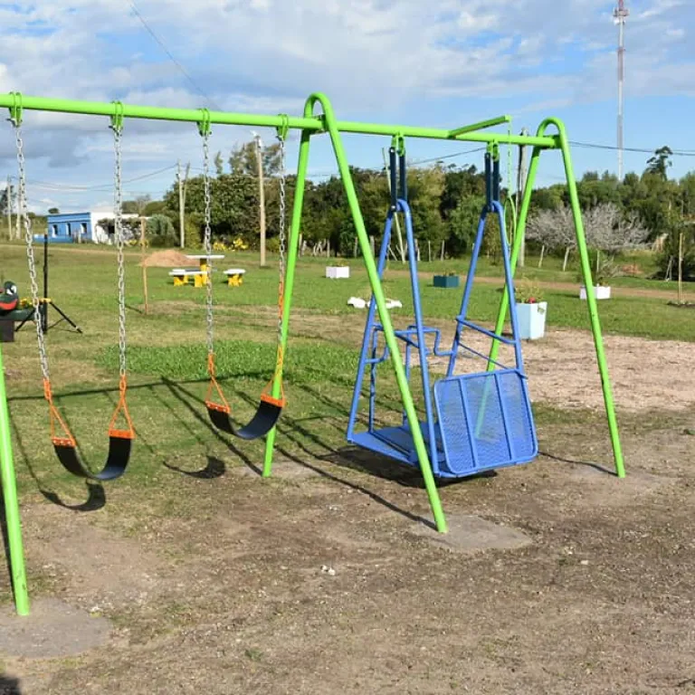 La nueva plaza cuenta con cinco juegos saludables, tres inclusivos y tres infantiles; además, funcionarios de Servicios Públicos de la Intendencia construyeron mesas y asientos de hormigón, instalaron columnas de alumbrado público con luces led y cambiaron los arcos de fútbol de la cancha lindera a este nuevo espacio que está ubicado frente al cementerio del pueblo.