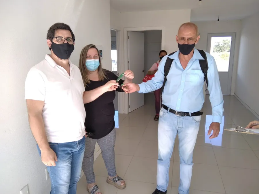 Participaron del acto de entrega de llaves, el director de Desarrollo Social, profesor Regino López; la directora de Vivienda y Hábitat, profesora Miguelina Biassini; y un representante del Ministerio de Vivienda.