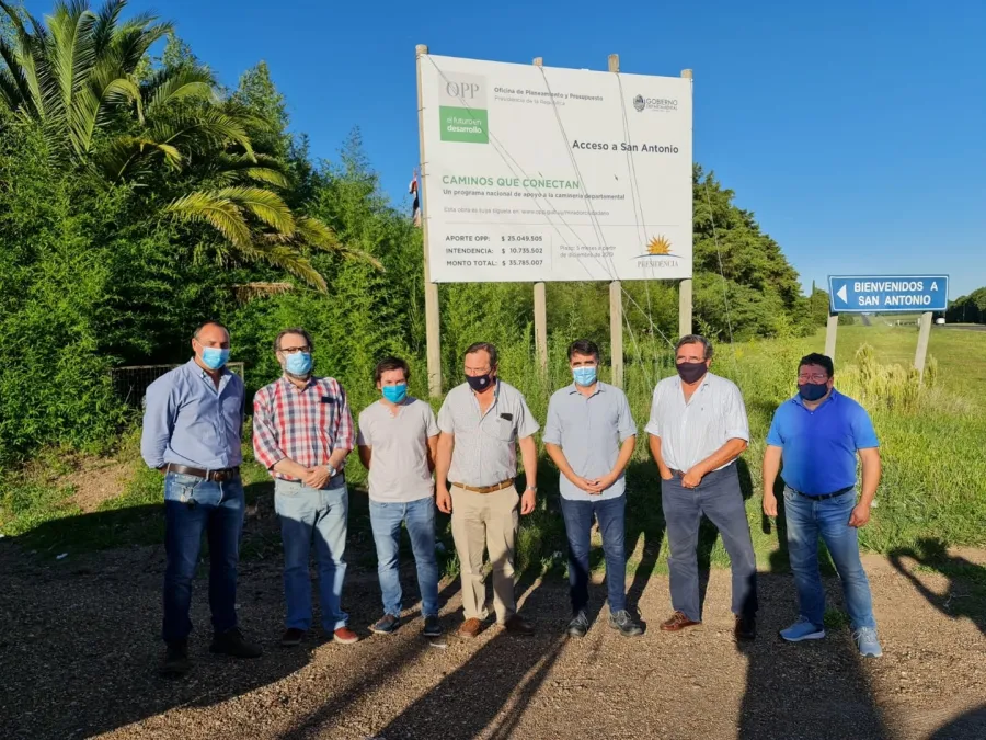Con la presencia del intendente Andrés Lima, el subdirector de la Oficina de Planeamiento y Presupuesto (OPP), José Luis Falero, y la alcaldesa del Municipio de San Antonio, Sandra Toncobitz, fueron inauguradas las obras de colocación de carpeta asfáltica en el camino de acceso a San Antonio..