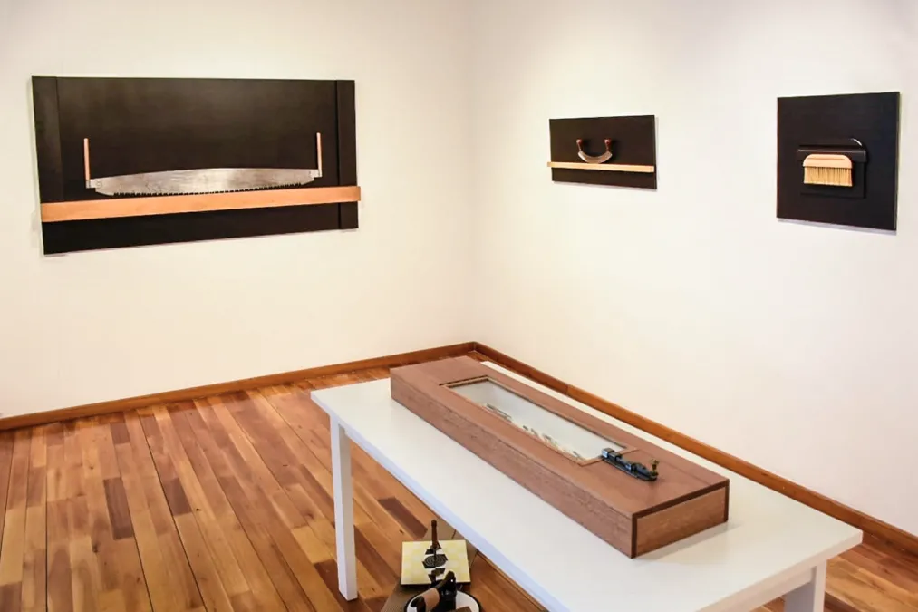 Es de destacar que Gallo, oriundo de Las Piedras, proviene del trabajo artesanal en relojería y joyería, oficio que continuó de su padre y su abuelo. "Su trabajo es de una perfección impresionante. Para hacer sus obras utiliza diferentes elementos que provienen no solo de la pintura sino también de otras manifestaciones así como objetos utilitarios", destacó Peralta, tales como herramientas, relojes, instrumentos, entre otros.