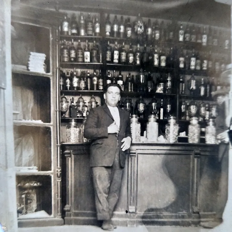 - Fotografía presentada por Antonella Menoni. Aparece su abuelo, Nello Antonio Menoni, en el año 1925, en la confitería Los Amigos ubicada en calle Uruguay entre Asencio y Amorim. La confitería pertenecía a Ceferino Menoni y otro socio.