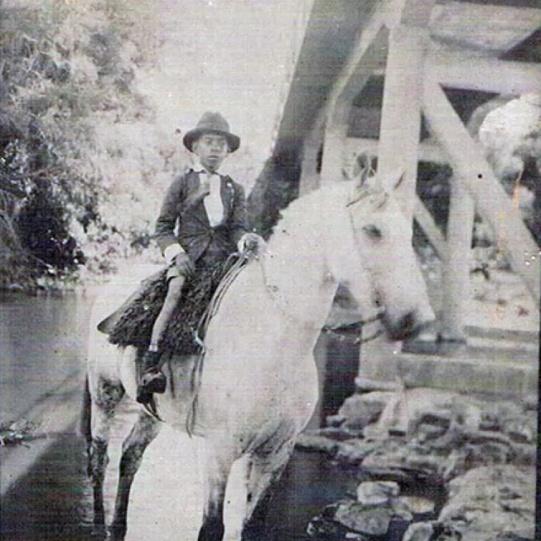 - Fotografía presentada por Lourdes Ilarraz. En la foto aparece Coralio Correa a caballo, en Paso del Potrero de Arerunguá, año 1928.