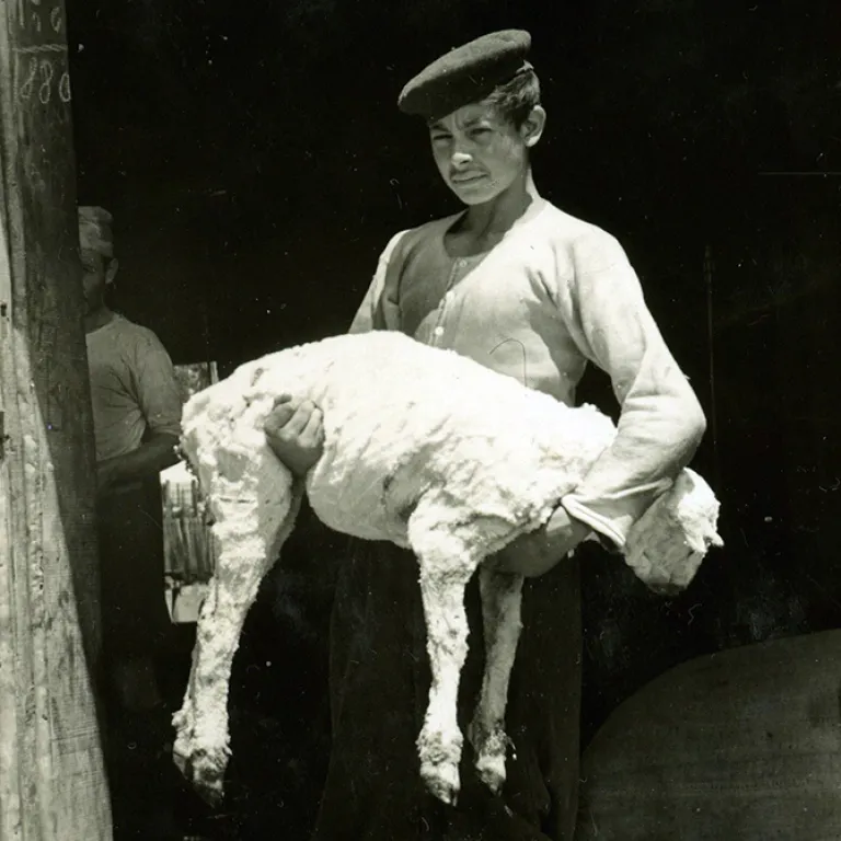 - Fotografía presentada por Ruben López. En la foto aparece un joven en una esquila, tío de Ruben López. Fue hecha en el año 1952 cuando el joven, hoy fallecido, tenía 14 años. Había ido ayudar al padre que era esquilador y justo estaba el fotógrafo. "Tal vez esa estampa de niño rural de mi tío haya sido la base para algún personaje de alguna de las novelas o cuento del fotógrafo, que además era escritor: Enrique Amorim", relata López.