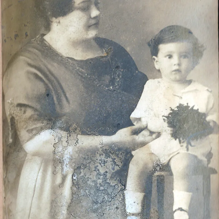 - Fotografía presentada por Cristina Gaudín. Foto familiar en la que aparece Adelaida Salgado de Gaudín con Néstor Gaudín.