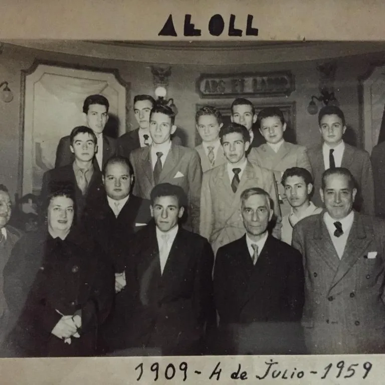 -Fotografía presentada por Jorge Valsecchi. Foto de 1959, de la Asociación de Estudiantes Osimani y Llerena. En primera línea el Cnel. Rodolfo W. Osorio, Q.F. Olga Cáceres de Gelpi, Manuel Olarreaga, Pablo (Chiche) Arrieta (presidente de Aeoll), Dr. Antonio Grompone, Dr. Domingo Iribarne. Segunda línea: Edgar Bibbó, Ángel Dreyer, Wilson Lluberas, G. Suárez. Al fondo: Jorge Valsecchi, Oscar Bibbó, Ricardo Realini, Abel Lagreca, Antonio Oliva, Pedro Satalía, Edgar Lluberas.