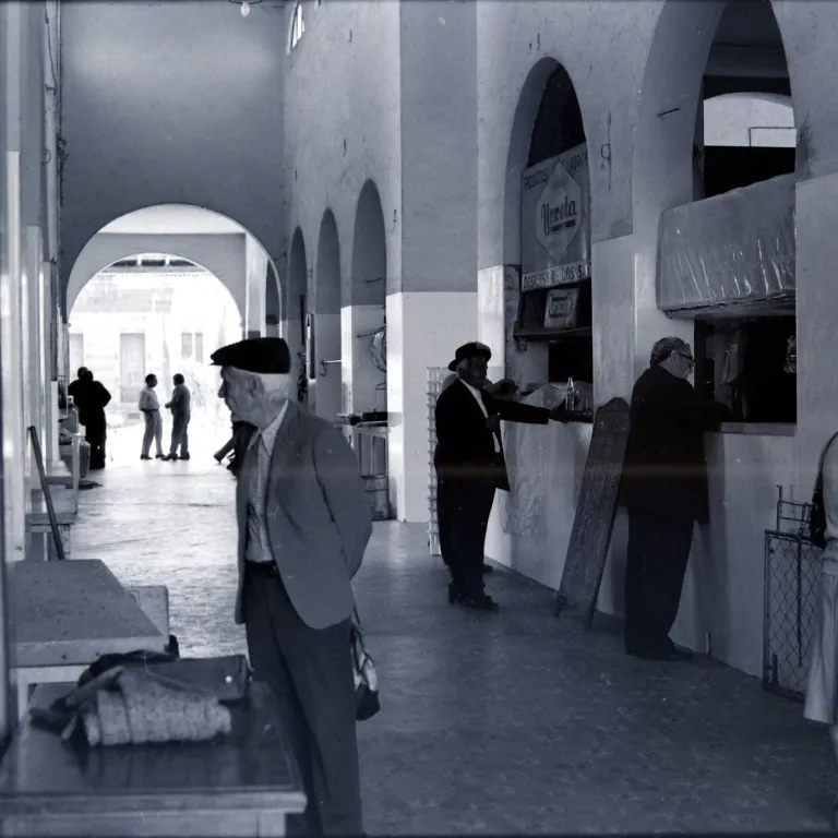- Fotografía presentada por Luis Alberto Pino Pérez. Fue tomada en el Mercado 18 de Julio a mediados de la década de 1970 y forma parte de una tarea hecha por estudiantes de Arquitectura.