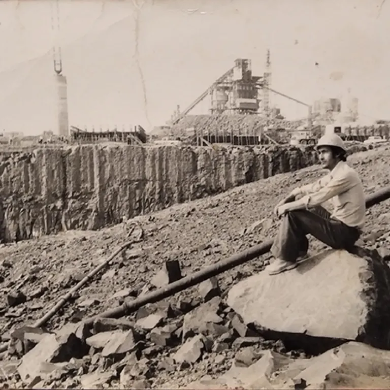 - Fotografía presentada por Claudia Anyelina Luz. En la imagen aparece su padre, Carlos Luzardo, durante la construcción de la represa de Salto Grande.
