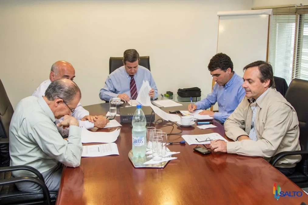 El Intendente de Salto, Dr. Andrés Lima, acompañado por el Contador Víctor Invernizzi, reunidos con integrantes de República Administradora de Fondos de Integración S.A (AFISA).