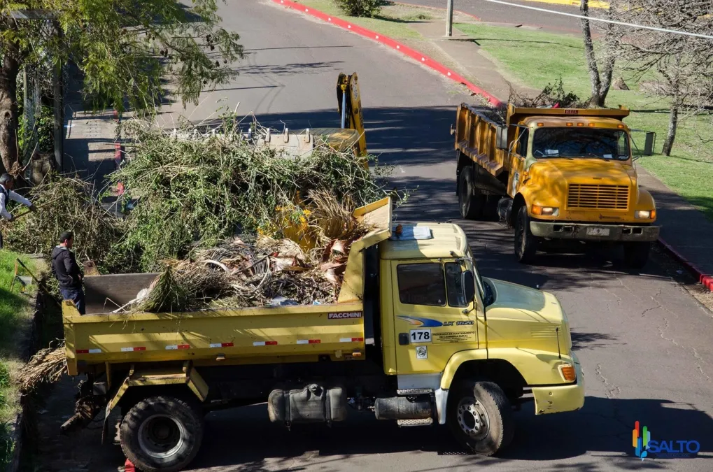 En varios puntos de la ciudad se pueden apreciar cuadrillas de la Intendencia trabajando en tareas de bacheo y recogiendo, de la vía pública, podas que llevan mucho tiempo depositadas en las veredas de los distintos barrios..
