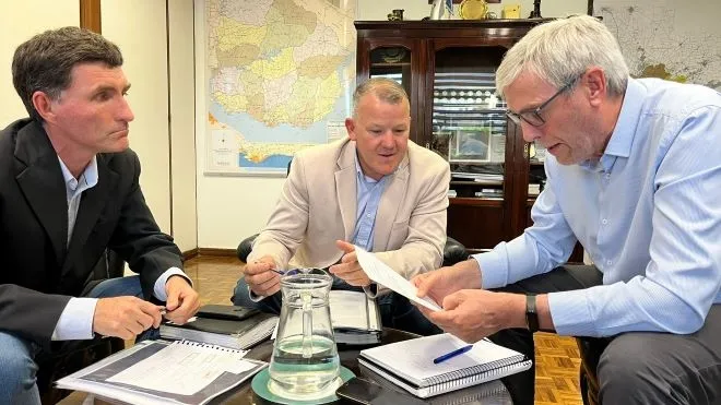 El intendente de Salto Andrés Lima, informó que se firmó el contrato con la empresa Cujó para la continuación de las obras en la avenida Ramón Vinci (ex Apolón), en este caso en el tramo comprendido entre Camino del Éxodo y Chiazzaro..PRODUCTORES Y OPERADORES INTERESADOS VISITAN LA CENTRAL HORTÍCOLA DEL NORTE