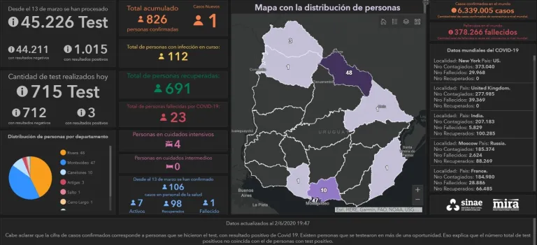 Desde la Dirección Departamental de Salud se informa que, en relación al coronavirus COVID-19, a la fecha Salto se encuentra con 1 caso activo, el ciudadano boliviano, que se encuentra cumpliendo su aislamiento en el Hospital de Salto, sin síntomas..28 DE AGOSTO: 8 NUEVOS CASOS POSITIVOS DE CORONAVIRUS EN URUGUAY