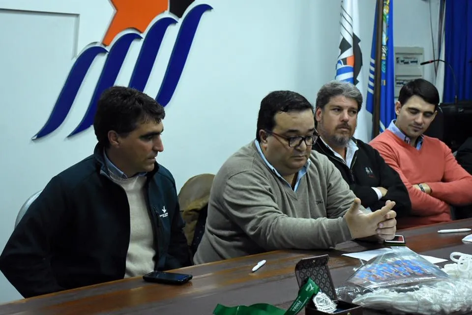 El Intendente de Salto, Dr. Andrés Lima acompañado del Director de Deportes, Jorge Soto acompañando la conmemoración de los 82 años de la Liga Salteña de Basquetbol.