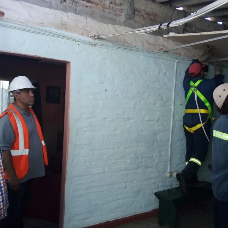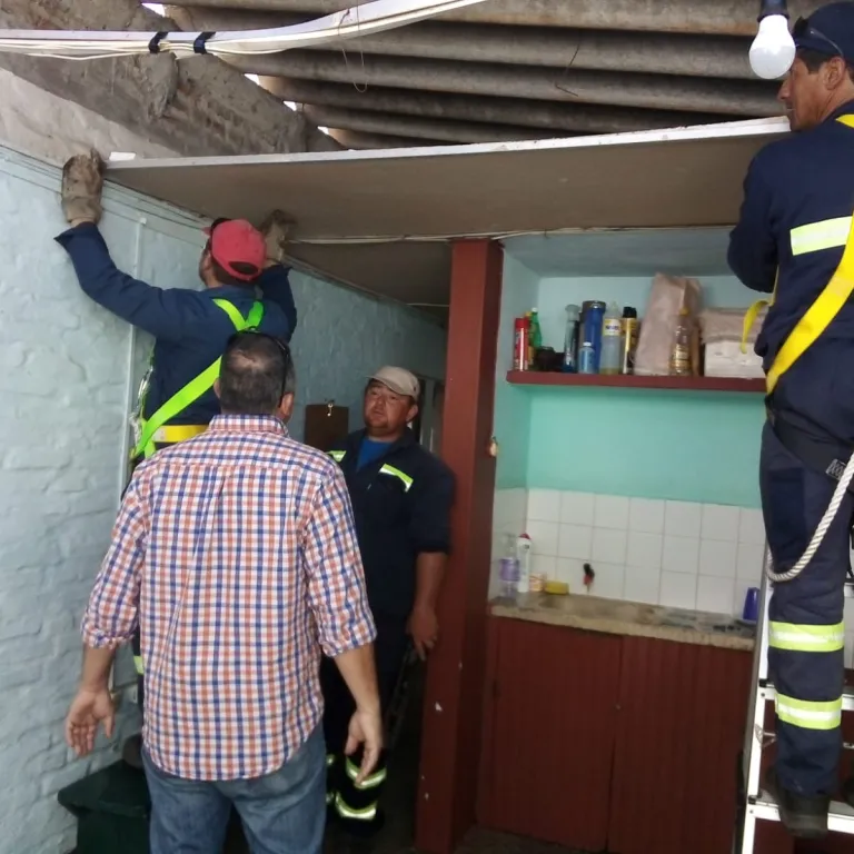 Actualmente se trabaja en la colocación de membrana y reparación de techos, como solución transitoria para las familias del complejo de viviendas, mientras se canaliza una solución definitiva a través de Mevir.