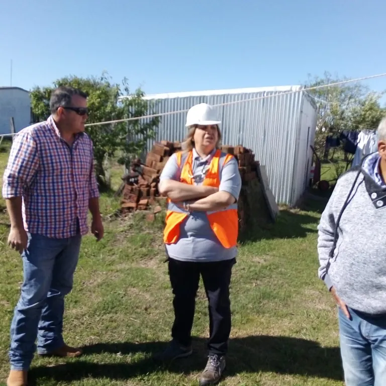 Funcionarios de los departamentos de Obras y Descentralización de la Intendencia de Salto continúan trabajando en Laureles, donde 23 viviendas de Mevir se vieron afectadas por la fuerte granizada ocurrida días atrás..