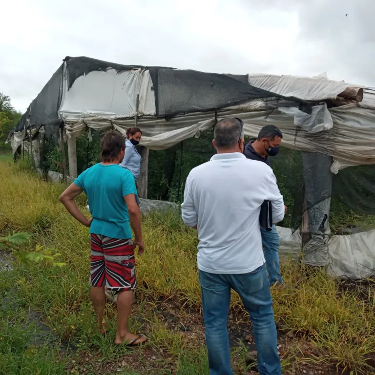 El director de Descentralización Álvaro Gómez inmediatamente se comunicó con el alcalde Carlos Souto para coordinar una visita que se llevó a cabo en horas de la tarde junto al equipo técnico para relevar los daños causados y evaluar junto al intendente Andrés Lima, el apoyo que se le pueda brindar tanto a los pequeños productores como a las familias.