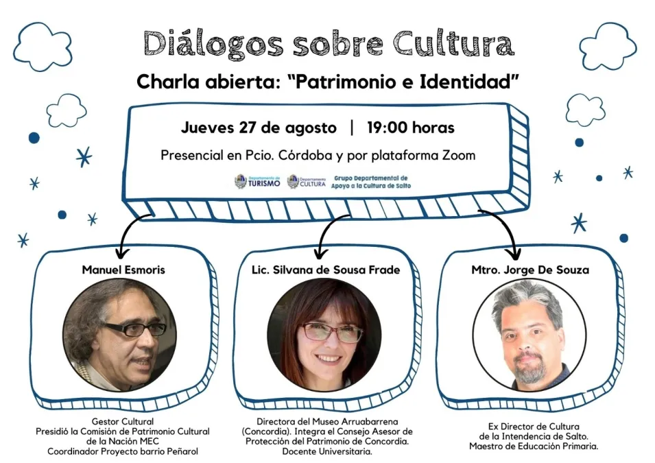 Continuando con la serie “Diálogos sobre Cultura”, este jueves 27 de agosto a las 19 horas se llevará a cabo la charla abierta “Diálogo sobre Patrimonio e Identidad”. La misma se realizará de forma presencial en la sala de actos del Palacio Córdoba (Uruguay 202) y se transmitirá en simultáneo por plataforma Zoom. El panel contará con la participación de prestigiosos expositores en la materia..