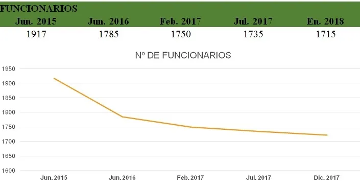 Este descenso se da a través del plan de reposición de 3 a 1, es decir, de cada tres funcionarios que cesan, se repone uno. Y esta medida se ve reforzada por el acuerdo firmado por esta Administración con el sindicato ADEOMS, en el cual a partir del 1º de junio de 2017, no hubo más designaciones directas y hoy todos los ingresos a esta Intendencia se realizan a través de sorteo o concurso.
