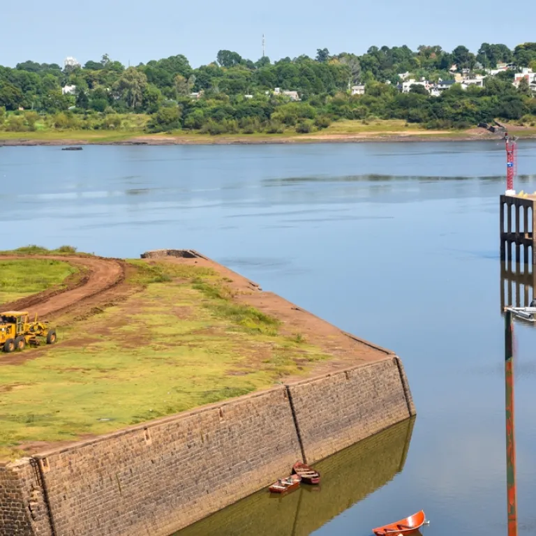 La Dirección de Obras de la Intendencia de Salto se encuentra ejecutando trabajos de reparación en inmediaciones del puente "Los Algarrobos" en Costanera Sur y la creación de un camino de acceso a la escollera sur del Puerto de Salto, una zona muy frecuentada por pescadores..