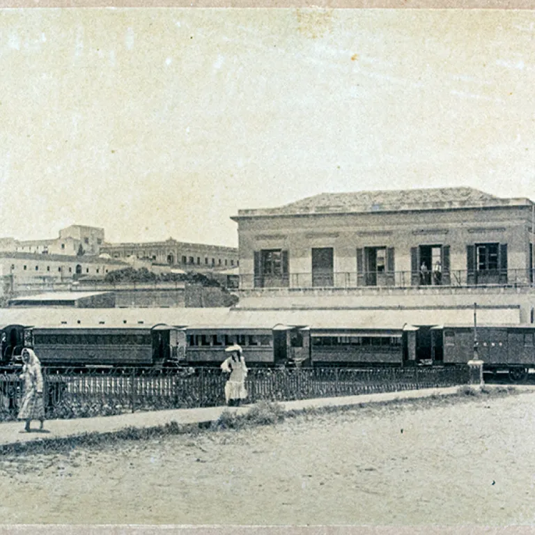 -Fotografía presentada por Matías Bernaola. Estación de Ferrocarril Noroeste de Salto. Sin dato de autor, década de 1890 (aprox.). Fotografía en papel albuminado. CF_A19_15. Colección Fotográfica/MHN.