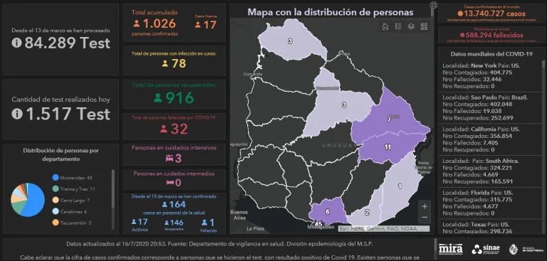 INFORME LUNES 20 DE JULIO: SE DETECTARON 10 NUEVOS CASOS POSITIVOS DE CORONAVIRUS EN URUGUAY